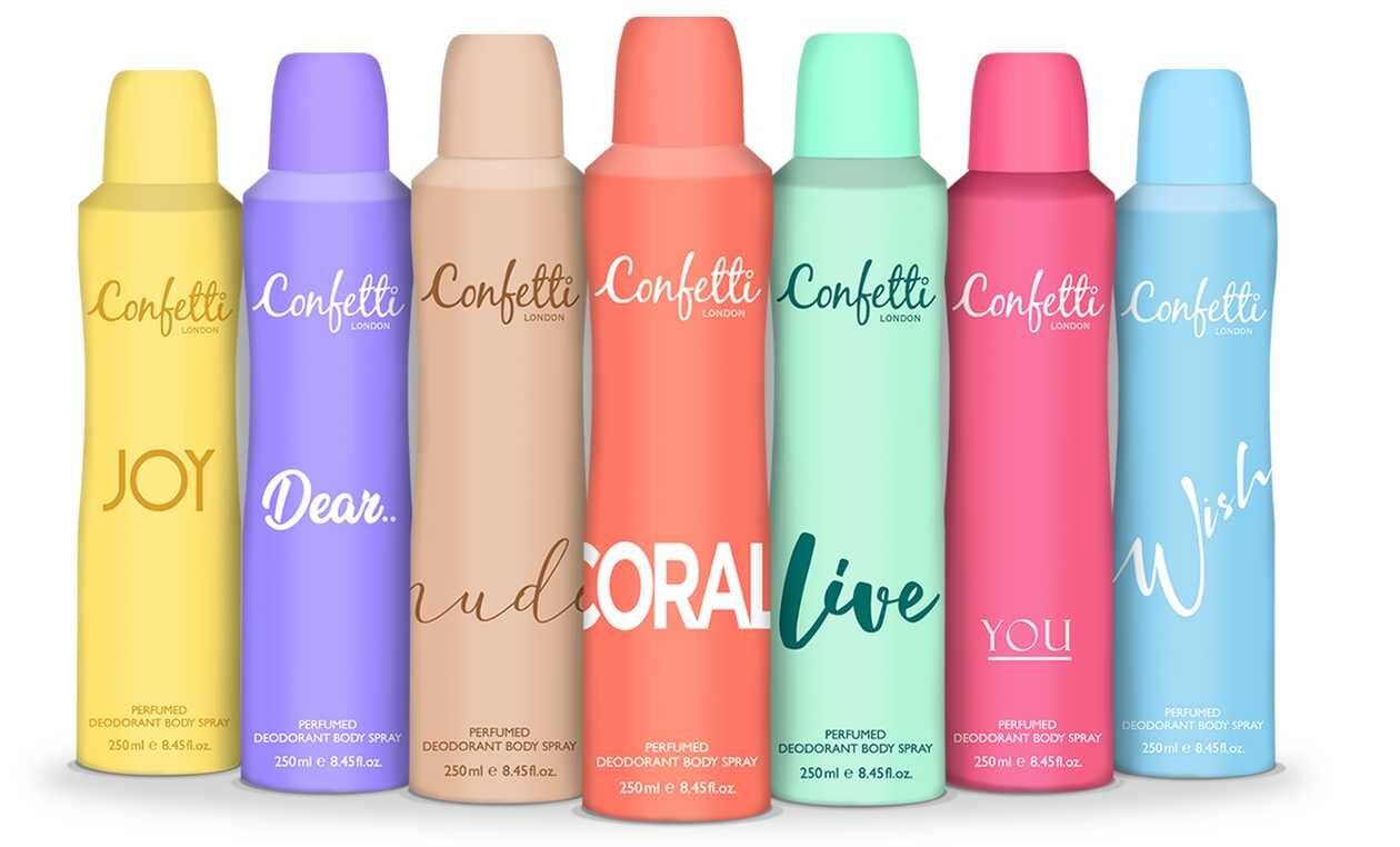confetti London Perfumed Deodorant Body Spray is a long-lasting, fragrance-rich body spray available in multiple variants like Joy, Dear, You, and Gorgeous, offering a combination of floral, fruity, and sweet scents that act as a “perfume in a can.”