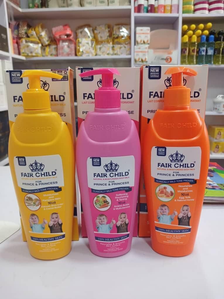 Fair Child Lotion is a natural and nourishing body lotion designed to moisturize, soothe, and protect children’s and sensitive skin, enriched with ingredients like egg yolk, honey, aloe vera, glycerin, amino acids, and vitamins.
