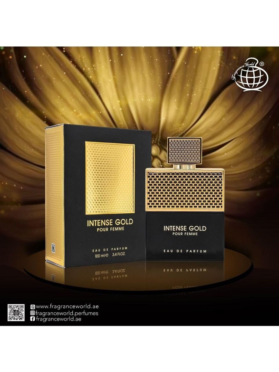 Intense Gold 100ml by Fragrance World is a sophisticated, long-lasting Arabic-inspired Eau de Parfum for women, featuring a luxurious blend of floral, amber, and woody notes suitable for elegant occasions and daily wear.